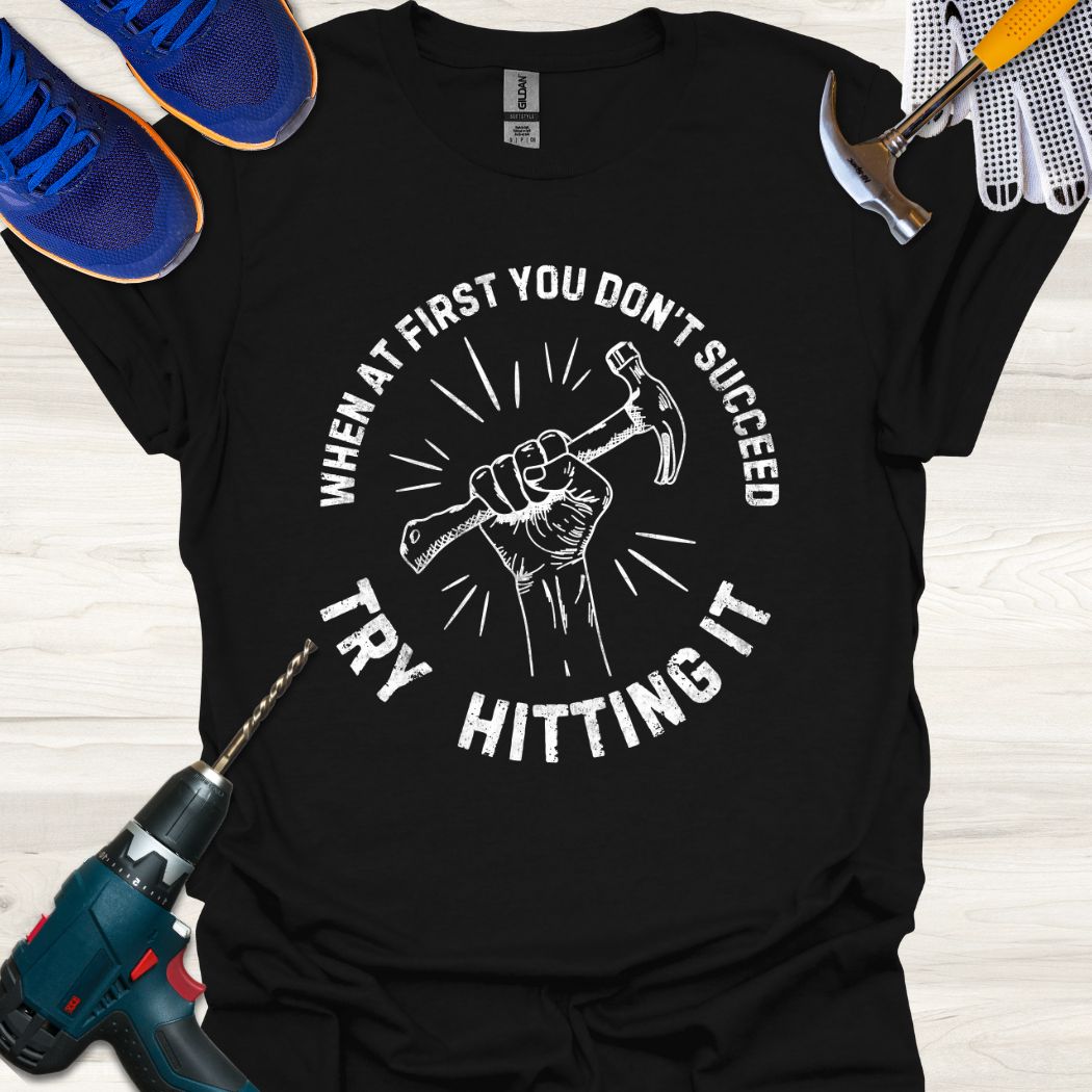 Try hitting it shirt, funny hammer tee, retro tool design, diy humor shirt, handyman joke t-shirt, when at first you dont succeed, vintage workwear shirt, carpenter humor tee, home repair shirt, handyman gift, funny construction tee, bold hammer graphic, tool lover shirt, blue collar humor, fixer upper t-shirt, mechanic joke shirt, hammer high design, working man shirt, motivational sarcasm tee, sarcastic handyman shirt, retro carpentry shirt, diy fail humor, quirky tool shirt, funny repair slogan, home improvement tee, power tools shirt, handy dad tee, hardware store humor